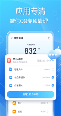 手心清理大師針對用戶常用的社交應用如微信、QQ,提供了專屬清理功能。該功能能夠智能檢測并清理這些應用中的圖片、視頻、聊天記錄、緩存等占用空間較大的文件,幫助用戶釋放存儲空間的同時,保證應用的正常運行。通過細致的文件分類,用戶可以選擇性刪除不需要的內容,而不必擔心誤刪重要數據。對于日常使用頻繁的用戶,微信專屬清理大大提高了手機的存儲管理效率,同時保證社交應用始終保持最佳性能。