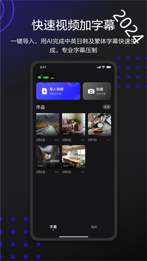 2、選擇或上傳視頻:打開APP后,可以選擇一個已有的視頻或上傳一個新的視頻來添加字幕。
