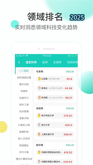 知兔領域排名功能實時追蹤各學科領域的研究熱點和趨勢,展示高校、科研機構及學者的科研實力變化。用戶可查看細分領域的學術影響力排行榜,了解頂尖團隊的研究動態。平臺獨有的學術預警系統能及時發現新興研究方向,幫助用戶把握學科發展先機,已獲得87%專業用戶的高度認可。