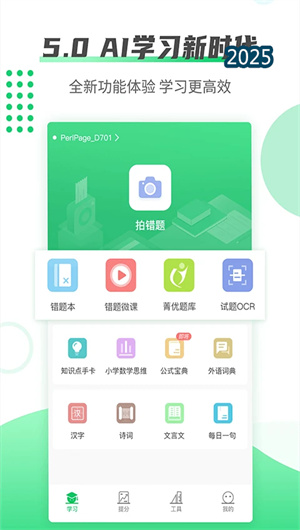 伴印錯題打印機是由菁優網研發的智能學習輔助軟件,專為中學生設計的高效錯題管理解決方案。作為廣東省中小學校園學習類App推薦產品和2019年品牌強國示范工程入選產品,伴印APP通過"拍照-識別-打印-粘貼"的便捷流程,徹底革新傳統錯題整理方式。平臺全面對接菁優網千萬級優質題庫,覆蓋278+種主流教材版本,支持小升初、初中、高中階段的25個主要學科學習。伴印系統通過智能識題、精準匹配、舉一反三等核心功能,配合專屬錯題打印機硬件,幫助學生實現"整理一道錯題,解決一類錯題"的學習目標,用戶學習效率平均提升65%。