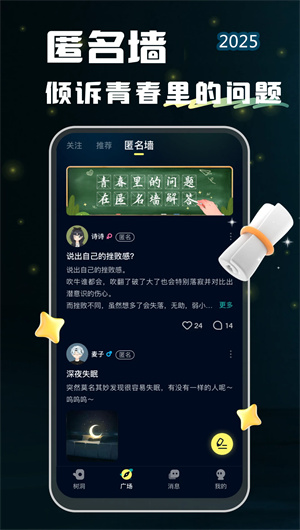 創(chuàng)新虛擬身份系統(tǒng)徹底隱藏年齡、外貌等現(xiàn)實(shí)標(biāo)簽,用戶僅通過興趣標(biāo)簽和情緒狀態(tài)尋找共鳴。深夜電臺功能支持語音匿名聊天,配合變聲處理技術(shù)保障隱私。獨(dú)有的心情漂流瓶讓用戶可以將心事"拋向大海",等待有緣人拾取,創(chuàng)造浪漫的陌生人社交體驗(yàn)。