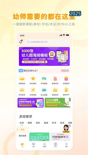 師訊APP擁有業內最完整的幼教課程體系,包含8000+個結構化視頻音頻課程,覆蓋幼兒園五大領域教學、班級管理、家長工作等核心板塊。平臺獨家引進300+學前教育名師的示范課程,通過"名師講堂"模塊呈現最前沿的教學理念。智能學習跟蹤系統會記錄用戶的課程學習進度,并基于學習數據分析生成個性化的能力提升建議,幫助幼師針對性補強專業技能短板。