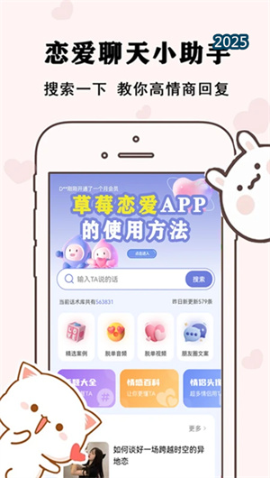 草莓戀愛APP是一款專為戀愛人群打造的AI情感助手和社交溝通平臺(tái),通過智能話術(shù)推薦、情感案例庫和高情商聊天訓(xùn)練,幫助用戶解決戀愛開場白、曖昧期破冰和關(guān)系維護(hù)等核心痛點(diǎn)。平臺(tái)整合了千萬級(jí)對話語料、心理學(xué)分析模型和實(shí)時(shí)互動(dòng)反饋系統(tǒng),提供從初次搭訕到長期關(guān)系經(jīng)營的全周期戀愛成長方案。無論是社交焦慮者、直男直女,還是戀愛小白,都能通過草莓戀愛APP的話術(shù)搜索引擎、情感百科智庫和CP互動(dòng)工具,快速提升聊天技巧和情感智商,讓每一次相遇都成為命中注定的緣分。