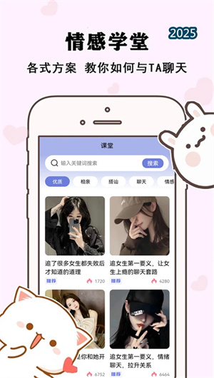 從搭訕開場到長期關(guān)系維護(hù),平臺(tái)提供分階段的戀愛課程:心動(dòng)期學(xué)習(xí)眼神接觸和肢體語言解讀;曖昧期掌握推拉話術(shù)和約會(huì)邀約技巧;穩(wěn)定期則聚焦沖突解決和共同成長。用戶可通過每日訓(xùn)練積累戀愛經(jīng)驗(yàn)值,解鎖情感達(dá)人徽章。