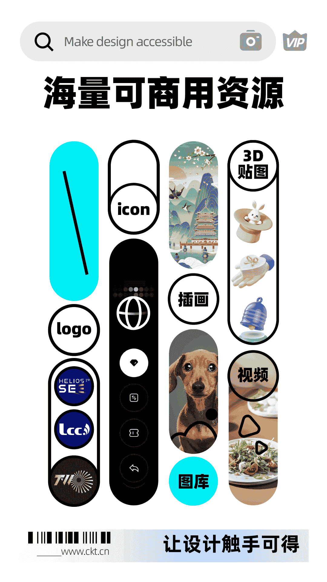 1、海量設(shè)計資源,億級版權(quán)資源,6000萬+人都在用。