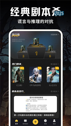 線上劇本殺APP是專為劇本殺愛好者打造的智能攻略平臺,集劇本庫大全、角色攻略、線索解析、推理技巧和復盤功能于一體,為玩家提供全方位的游戲支持。平臺采用AI劇本分析引擎和大數(shù)據(jù)玩家畫像技術(shù),精準匹配用戶需求,涵蓋情感本、硬核推理本、恐怖本、機制本等各類熱門劇本類型。目前平臺已收錄3000+精品劇本,每日新增攻略內(nèi)容500+條,用戶平均游戲水平提升40%,成為劇本殺玩家必備的智能助手。無論是新手入門還是資深玩家進階,都能在這里獲得專業(yè)指導,體驗更沉浸、更精彩的劇本殺世界。