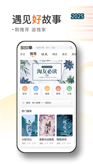 淘故事APP是一款專注于原創(chuàng)故事創(chuàng)作與分享的文學(xué)社交平臺,通過智能推薦引擎、多體裁分類、創(chuàng)作者孵化等核心功能,打造沉浸式故事閱讀體驗(yàn)。平臺匯聚民間傳說、婚姻愛情、奇聞異事、科幻未來、懸疑推理、靈異志怪、青春校園、神話紀(jì)實(shí)、人生感悟、幽默笑話等十大類故事內(nèi)容,采用編輯精選、算法推薦、熱度排行三重內(nèi)容分發(fā)機(jī)制。其創(chuàng)作工具、稿酬激勵、責(zé)編指導(dǎo)體系已吸引超過50萬創(chuàng)作者入駐,日均新增故事3000篇,用戶平均停留時長達(dá)到45分鐘,睡前故事板塊使用率高達(dá)78%。