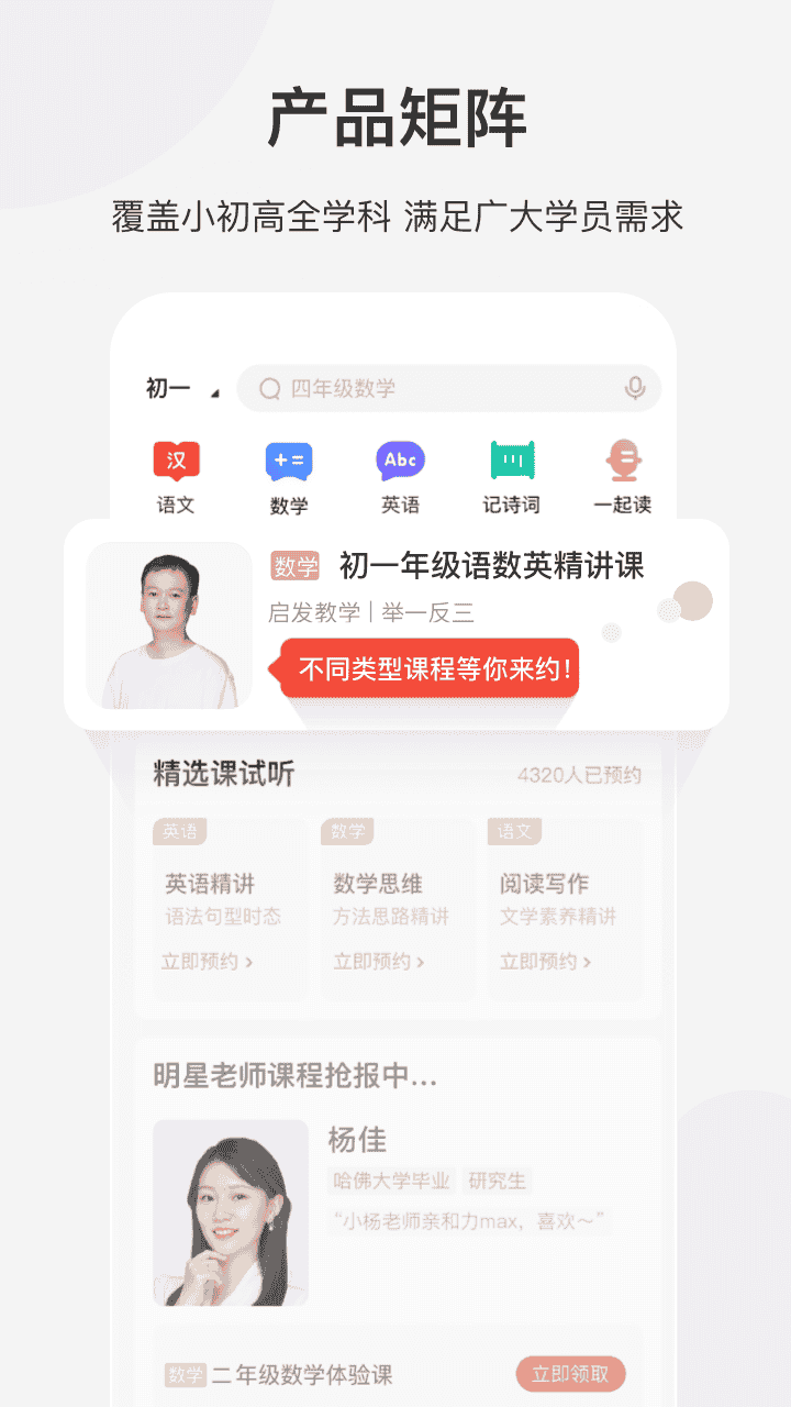3、針對性學(xué)習(xí)計劃,如小學(xué)語數(shù)英知識精講,初中多科重難點專題、高中多科難解題大招梳理。