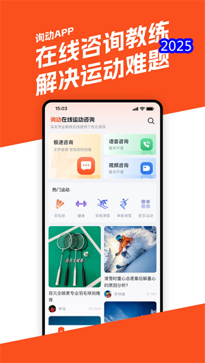 詢動APP是一款專注于運動技能提升的在線教練平臺,為滑雪、健身、羽毛球等熱門運動愛好者提供專業級指導服務。平臺采用實名認證體系和雙重審核機制,匯聚了各運動領域的資深教練資源,通過視頻分析、實時互動和個性化方案三大核心功能,為用戶打造全方位的運動學習體驗。