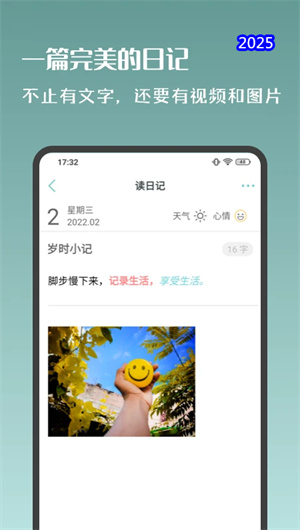歲時小記不僅是一款記錄工具,更是陪伴用戶成長的情感伙伴。從【日記分類】到【樹洞分享】,從【倒數日】到【時光信件】,每一個功能都經過精心設計,旨在幫助用戶珍藏生活點滴,發現平凡中的美好。無論是記錄重要時刻,還是梳理日常心情,歲時小記都能提供最貼心的支持。立即下載體驗,開始書寫屬于你的歲時故事,讓每一段時光都被溫柔以待。