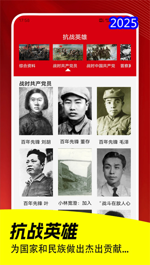 APP每日推送“歷史今天”欄目,結合AI語音播報功能,讓用戶了解歷史上的今日發生的重大軍事事件。同時,從軍記收錄了超過1000位抗戰英雄的詳細生平,如楊靖宇、趙一曼等,并配以3D人物建模和動態故事講述,增強用戶的代入感。用戶還可通過觀后心得功能記錄學習感悟,并分享至社區。