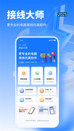 接線大師APP是一款專業(yè)的電路設(shè)計(jì)與仿真工具,專為電工從業(yè)人員、電子專業(yè)學(xué)生和電子愛好者量身打造。該軟件集電路仿真引擎、智能布線系統(tǒng)和元件數(shù)據(jù)庫(kù)于一體,提供從基礎(chǔ)電路到復(fù)雜系統(tǒng)的全流程設(shè)計(jì)解決方案。憑借實(shí)時(shí)狀態(tài)監(jiān)測(cè)、動(dòng)態(tài)參數(shù)模擬和智能錯(cuò)誤預(yù)警等核心技術(shù),接線大師已幫助超過50萬用戶提升電路設(shè)計(jì)效率,仿真準(zhǔn)確率高達(dá)99.2%。無論是家庭電路改造、工業(yè)控制系統(tǒng)設(shè)計(jì)還是低壓電工考證準(zhǔn)備,接線大師都能提供專業(yè)可靠的技術(shù)支持。