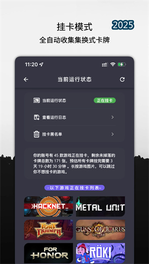 云掛卡App是一款基于云端分布式計算與Steam API深度集成開發的智能集換式卡牌管理工具,旨在為用戶提供全自動、跨平臺的掛卡解決方案。通過本軟件,用戶無需開啟個人電腦即可借助云端服務器自動檢測游戲庫中所有支持集換式卡牌的游戲,并啟動虛擬化掛卡會話,實現7×24小時不間斷的卡牌 farming 進程。同時,App支持游戲時長累積與徽章等級提升等輔助功能,不僅幫助用戶高效完成卡牌收集,更為補票游戲提供沉浸式時長增長服務,全面滿足Steam玩家社群的多維需求。