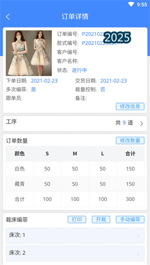 衣算App內置訂單管理核心組件,涵蓋從款式錄入、工藝分解到訂單派發(fā)、完工驗收的全流程。軟件支持BOM表(物料清單)自動關聯(lián)與工藝路線配置,并可基于歷史數(shù)據(jù)智能預測訂單工時。通過訂單狀態(tài)看板與交付倒計時功能,衣算制衣廠能夠有效避免交期延誤,實現(xiàn)訂單流程的標準化與可追溯化。
