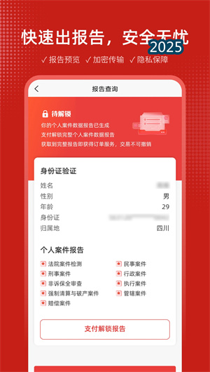 3. 隱私保護貫穿始終,數據安全至高無上:我們深刻理解個人信息與企業信息的敏感性,因此將隱私與數據安全置于最高優先級。用戶的查詢授權信息僅用于當次合規查詢,絕不會被留存或用于任何其他目的。采用銀行級加密技術對傳輸和存儲的數據進行保護,確保數據安全無虞。這一以貫之的隱私保護機制,使得用戶能夠完全放心地使用本應用進行各類風險排查。