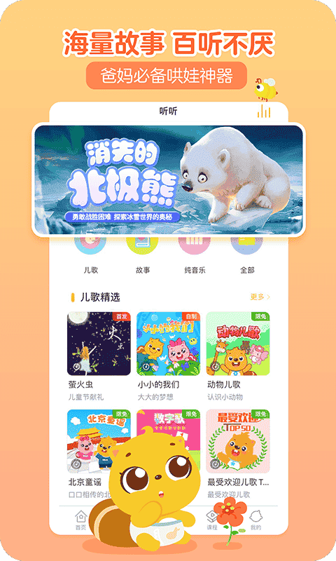2、音頻分類:兒歌童謠、童話故事、國學經典、百科大全、廣播劇集、認知啟蒙、學科啟蒙。