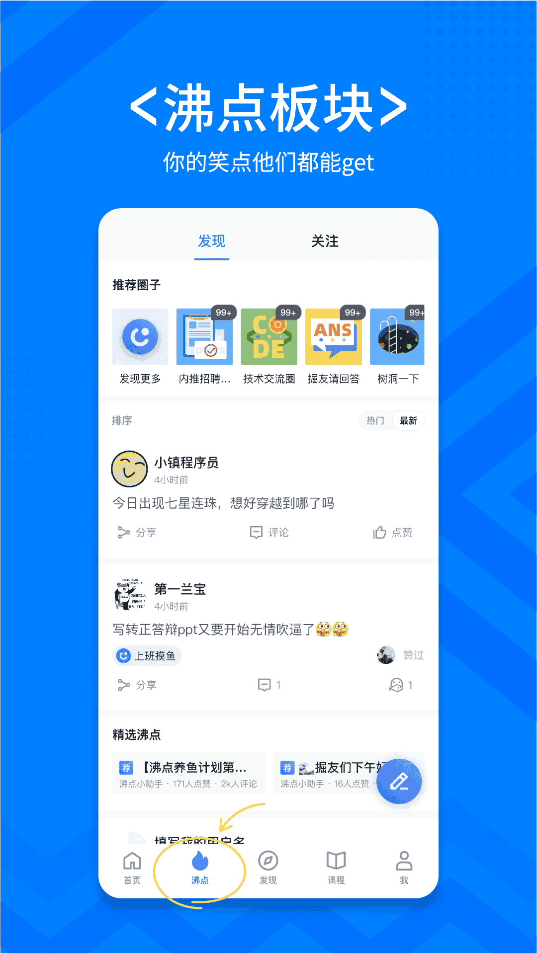 4、話題廣場:#最難忘的面試經(jīng)歷、#這屆學生過年都干啥、#年輕人要不要裸辭、#你經(jīng)歷過的奇葩面試、#一句話證明自己是程序員。