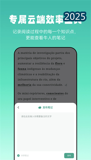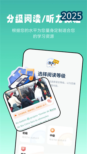 1. 萊特葡萄牙語閱讀聽力的智能閱讀系統(tǒng)提供分級閱讀匹配功能,通過難度評估測試精準定位用戶當(dāng)前水平,利用文章分級標簽自動推薦合適材料,借助漸進式難度提升確保學(xué)習(xí)效果。系統(tǒng)每日更新時效性閱讀材料,配備智能語音高亮實現(xiàn)視聽同步,同時閱讀理解練習(xí)即時檢測學(xué)習(xí)成效,閱讀速度統(tǒng)計量化進步幅度,使閱讀能力提升速度提高55%。
