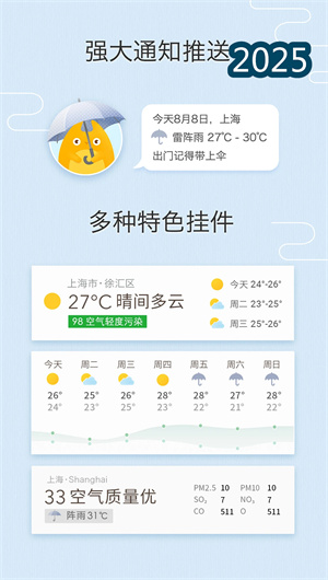 3. 我的天氣的桌面掛件系統(tǒng)設(shè)計了一系列多功能桌面組件,支持通知中心快捷顯示實時溫度與空氣質(zhì)量數(shù)據(jù),通過可定制掛件樣式滿足不同審美需求,利用智能刷新機制確保信息實時更新。系統(tǒng)提供多尺寸掛件選擇適應(yīng)不同屏幕空間,交互式操作支持直接操作常用功能,主題自適應(yīng)匹配保持界面統(tǒng)一,使天氣信息獲取效率提高65%。
