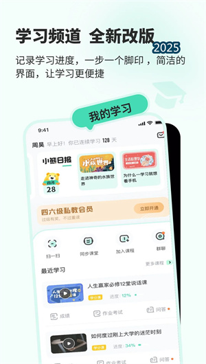 知到APP作為智慧樹網(wǎng)旗下核心子品牌,是全球領(lǐng)先的學(xué)分課程運(yùn)營服務(wù)平臺的重要移動端入口,依托海內(nèi)外2000+大學(xué)會員構(gòu)建的高等教育生態(tài)圈,致力于推動優(yōu)質(zhì)教育資源的社會化共享。這款面向終身學(xué)習(xí)者的知識服務(wù)平臺深度融合名師講堂、開放課程、學(xué)習(xí)社區(qū)三大核心模塊,通過智能化的個性推薦系統(tǒng)與專業(yè)化的學(xué)習(xí)工具矩陣,打造出集課程學(xué)習(xí)、互動討論、進(jìn)度管理于一體的沉浸式學(xué)習(xí)體驗(yàn)。知到APP秉承"源自大學(xué)課堂"的基因,通過學(xué)分認(rèn)證體系與跨校選課機(jī)制,讓每一位求知者都能享受名校課程資源,真正實(shí)現(xiàn)"每天一節(jié)課,給大腦營養(yǎng)"的個性化成長承諾。