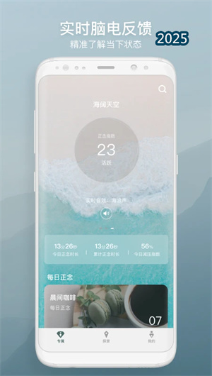 1. 仰憩APP的首要亮點是其實時生物反饋技術的創新應用,通過腦電信號即時解析與音效動態響應系統,創造沉浸式訓練體驗。基于專注度閾值監測與干預策略觸發,系統自動調整引導強度與環境參數,配合即時數據可視化與效果提示,強化訓練感知。該亮點通過建立生物反饋優化算法與實時干預機制,使用戶入門時間縮短約55%,降低初學門檻。