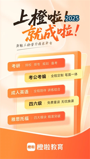 橙啦App是一款專注于服務(wù)年輕人的高品質(zhì)學(xué)習(xí)平臺(tái),以大學(xué)四六級(jí)及考研課程為核心基礎(chǔ),構(gòu)建了覆蓋實(shí)用英語(yǔ)、家庭教育、職業(yè)教育等領(lǐng)域的完整成人教育課程體系。平臺(tái)依托優(yōu)質(zhì)的直播教學(xué)系統(tǒng)與至臻學(xué)習(xí)輔導(dǎo)服務(wù),通過(guò)專業(yè)師資團(tuán)隊(duì)和智能化學(xué)習(xí)技術(shù),為每位學(xué)員提供個(gè)性化、高效率的學(xué)習(xí)體驗(yàn)。橙啦致力于打破傳統(tǒng)教育壁壘,讓知識(shí)傳播不再受時(shí)空限制,真正實(shí)現(xiàn)"讓每一位學(xué)員學(xué)得會(huì)、用得好"的教育理念,成為新時(shí)代年輕人終身學(xué)習(xí)的重要伙伴。