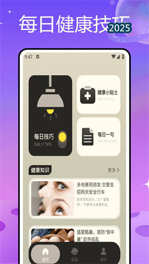 3. 星星解惑APP打造完善的健康知識體系,整合健康小貼士和每日健康技巧,為用戶提供專業的養生指導。系統支持健康計劃制定和習慣追蹤,提供個性化方案和進度管理。該功能還包含健康評估和改善建議,配合提醒服務和效果反饋,幫助用戶建立科學的生活方式。