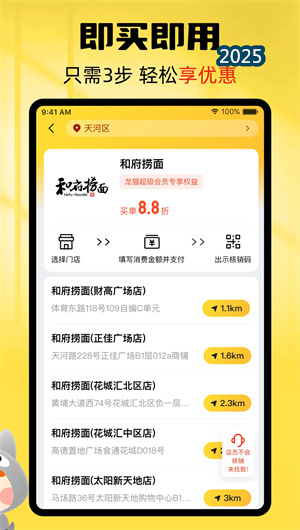 2. 平臺構(gòu)建了完善的到店優(yōu)惠體系,整合2000余家合作門店的折扣信息,用戶可通過門店篩選與距離排序快速定位心儀餐廳。系統(tǒng)提供在線買單與優(yōu)惠驗證服務(wù),支持折扣計算與實付顯示功能,最低可享8.8折的專屬優(yōu)惠。該功能還包含預(yù)約訂座與排隊取號等增值服務(wù),全面優(yōu)化用戶的到店用餐體驗。