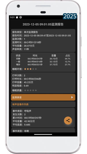 1. 智能鼾聲監(jiān)測系統(tǒng)采用深度學(xué)習(xí)算法構(gòu)建的聲學(xué)事件識別引擎,能夠精準(zhǔn)捕捉睡眠過程中的打呼嚕事件與說夢話內(nèi)容。通過高靈敏度音頻采集與降噪處理技術(shù),系統(tǒng)自動過濾環(huán)境雜音,確保鼾聲檢測的準(zhǔn)確性。每次識別到的打呼嚕事件都會進(jìn)行錄音保存,并通過聲波分析算法計(jì)算打呼嚕頻率、強(qiáng)度與持續(xù)時間,形成完整的鼾聲檔案,監(jiān)測準(zhǔn)確率達(dá)到94%。
