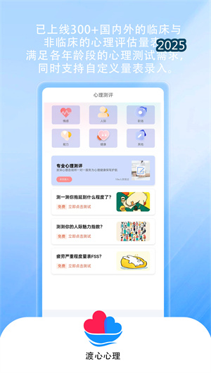 渡心APP的核心功能是心理健康監測體系,通過專業心理測評工具定期評估用戶心理狀態,建立動態的心理健康檔案。創新的預警機制自動識別心理風險因素,趨勢分析功能可視化展示情緒變化規律。專業的測評庫涵蓋情緒、壓力、人際關系等多個維度,常模對比幫助用戶了解自身狀態在人群中的位置,實現心理健康的科學管理。