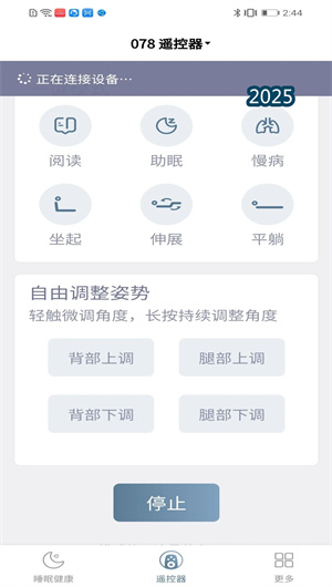莫克星球App支持多種電動床模式的智能控制,用戶可根據需求選擇閱讀模式、助眠模式、助起模式、伸展模式、平躺模式等預設場景。自定義設置功能允許個性化調整床體角度與硬度,定時切換實現自動模式轉換,場景記憶保存常用配置,這些功能共同打造了智能化的睡眠環境。