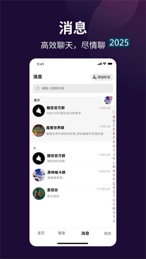 隨信的一大亮點是它徹底重構(gòu)了陌生人社交的連接邏輯。它通過唯一數(shù)字名片ID系統(tǒng),將現(xiàn)實世界中“點頭之交”、“一面之緣”的輕量級社交關(guān)系完美地映射到線上。用戶無需經(jīng)歷“申請-通過-尬聊”的傳統(tǒng)流程,可以直接基于數(shù)字名片發(fā)起一次性的臨時對話。這種模式非常適合咨詢、合作、詢問等低頻但高效的社交場景,使得認識新朋友的過程變得無比順暢和自然,極大地拓展了用戶的社交邊界,同時又無需承擔長期社交關(guān)系維護的壓力。