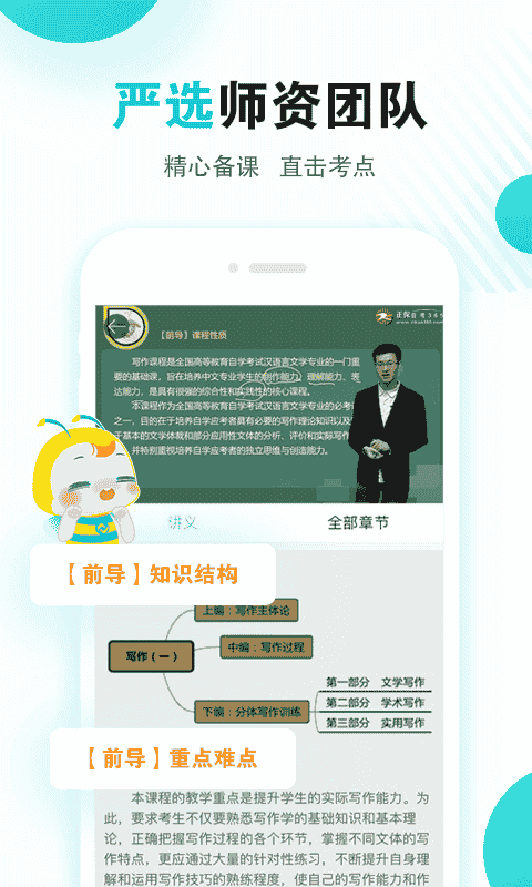 1、復習指導:歷年試題、筆記串講、應試技巧、自考問答。