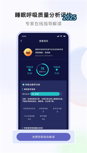 《睡好了么》是一款融合人工智能技術與臨床睡眠醫學原理的智能睡眠管理應用。通過多模態生物信號采集系統與非接觸式生理監測技術,突破傳統穿戴設備的物理限制,實現全周期睡眠結構分析。其核心技術采用醫療級傳感器融合算法,能夠精準捕捉用戶夜間睡眠狀態變化,形成個性化睡眠質量指數(PSQI),并基于睡眠階段分解模型提供專業改善方案。該應用已建立睡眠數據云存儲中心,累計為超過500萬用戶提供睡眠健康干預服務,其呼吸事件自動檢測系統的準確率達93.7%,成功構建從監測到干預的完整睡眠生態閉環系統。