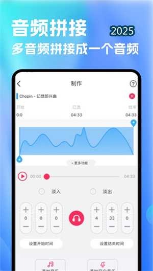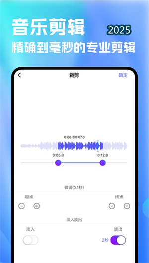 2. 高精度音樂剪輯器配備毫秒級時間軸縮放系統與音頻磁性吸附功能,支持對音頻文件進行無損裁剪、片段復制與精準刪除。剪輯器集成實時頻譜分析儀,可視化展示音頻的頻率分布,幫助用戶基于頻譜特征點進行精確切割,配合剪輯歷史堆棧功能支持無限次撤銷與重做。