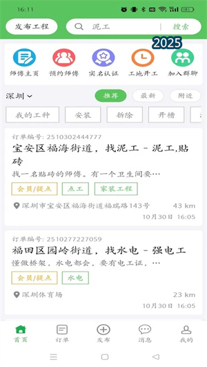 對于有裝修需求的用戶或企業,棒棒錘APP提供了極其便捷的 “一鍵發布需求” 功能。用戶可根據項目類型(家裝、工裝、零散維修)、所需工種(水電、瓦工、木工、油漆等)、施工地點及時間要求,清晰發布用工需求。平臺搭載的 “智能匹配引擎” 會基于需求描述、地理位置以及平臺上20萬+實名認證裝修師傅的技能標簽、歷史評價、接單記錄和實時位置,進行毫秒級計算,將訂單精準推送給最匹配的優質裝修師傅或裝修工長。用戶可在推薦列表中直接查看師傅的認證信息、作品案例和過往評價,實現 “找師傅更精準” 的目標,極大提升了匹配效率和成功率。