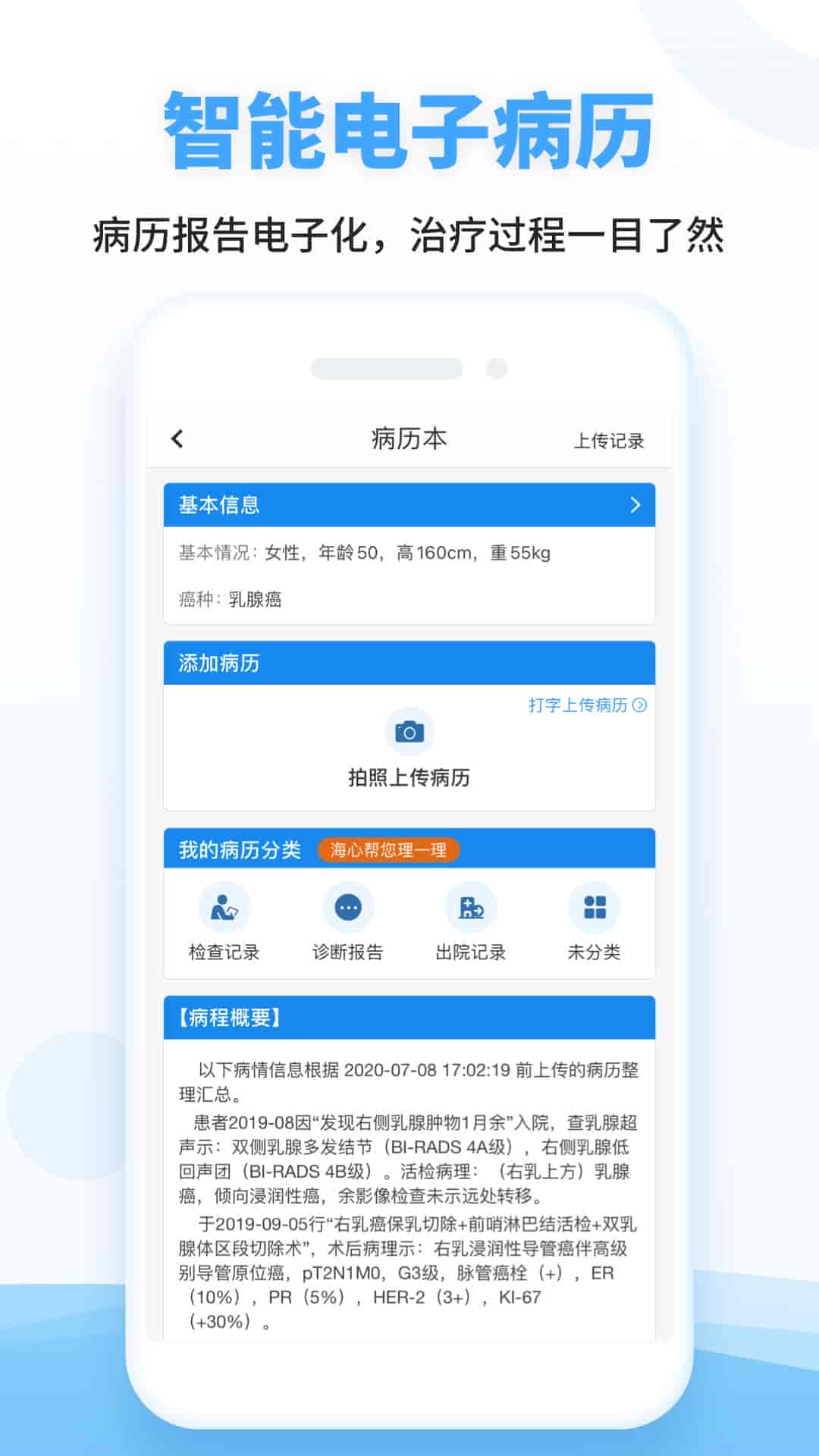 海心健康是一款由浙江海心智惠科技有限公司推出的健康管理軟件,海心幫助腫瘤患者。