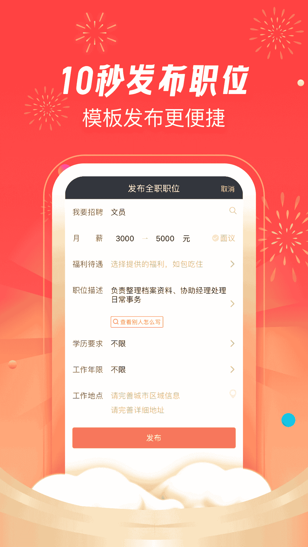 4、信息發(fā)布速度快,多平臺(tái)同步邀約求職者,上午發(fā)布職位,下午就能招到人。