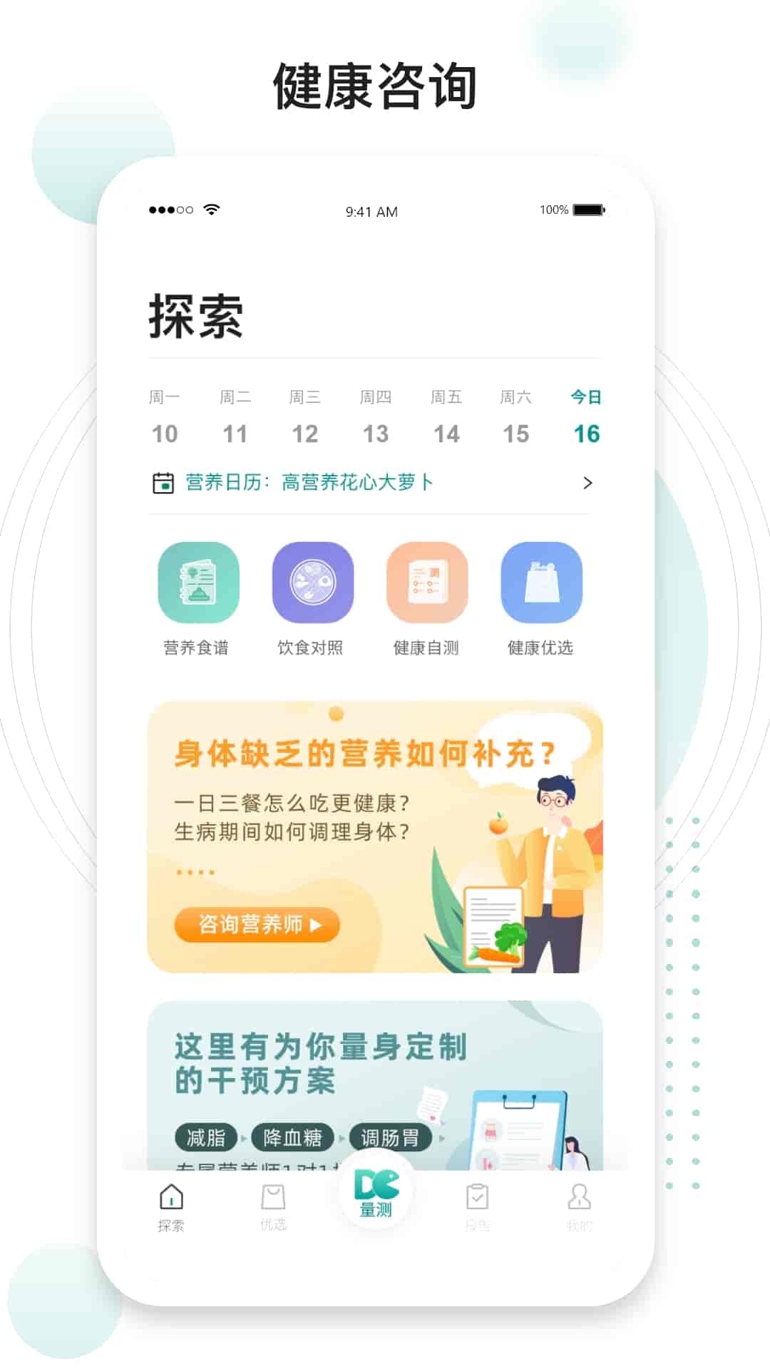 1、工具:營養食譜、飲食對照、健康自測。