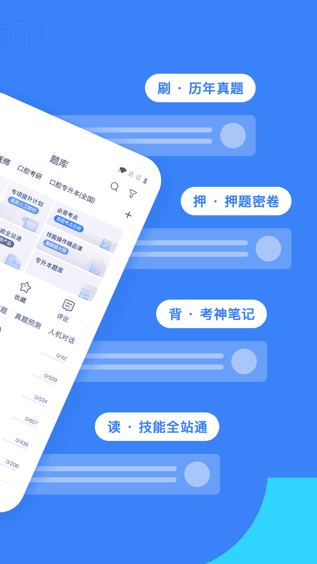 3、題庫(kù)內(nèi)容豐富,有口腔裝升本、口腔考研、口腔執(zhí)業(yè)醫(yī)師、口腔執(zhí)業(yè)助理醫(yī)師、口腔規(guī)培結(jié)業(yè)考核、口腔中級(jí)職稱、口腔招聘、口腔在職申碩。