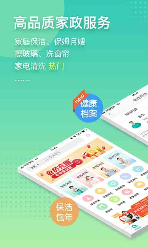 2、一站式互聯網家政服務平臺,已覆蓋北京、上海、深圳、廣州、杭州、成都、南京等八十多個城市,用戶可線上預約家政服務。