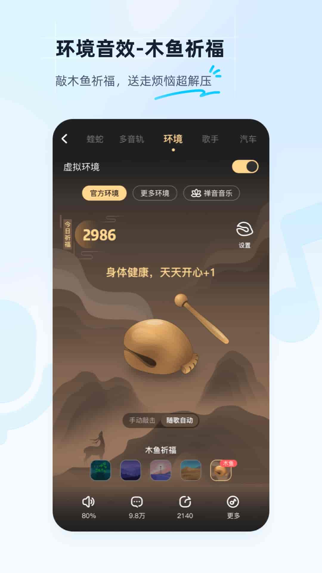 1、環境音效,木魚祈福,敲木魚祈福,送走煩惱超解壓;優質睡眠陪伴曲,放松身心,一秒入睡。