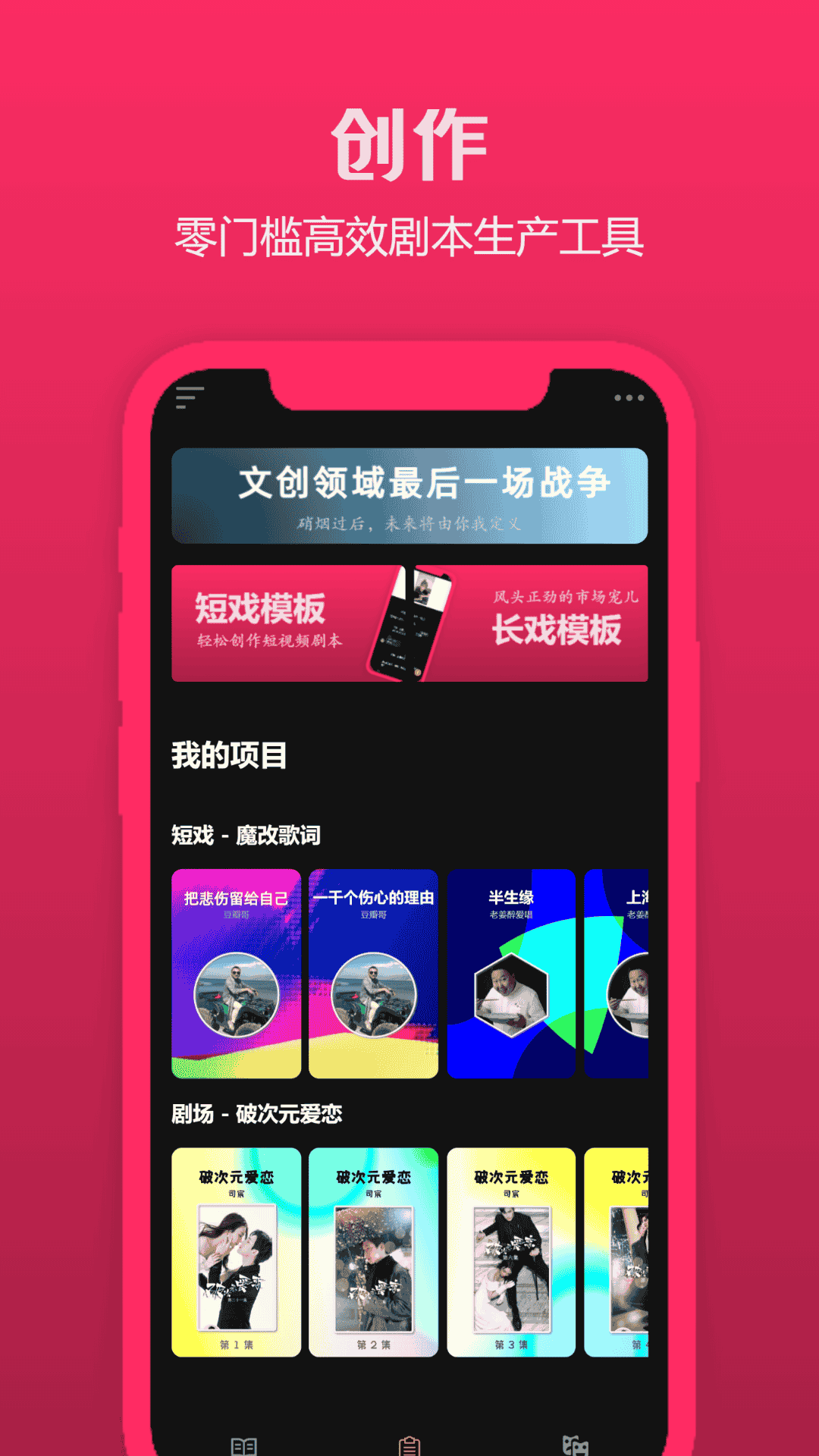 輕松創(chuàng)作短視頻劇本,風(fēng)頭正勁的市場(chǎng)寵兒,如短戲模板、長(zhǎng)戲模板,等你來成為編導(dǎo)創(chuàng)作。