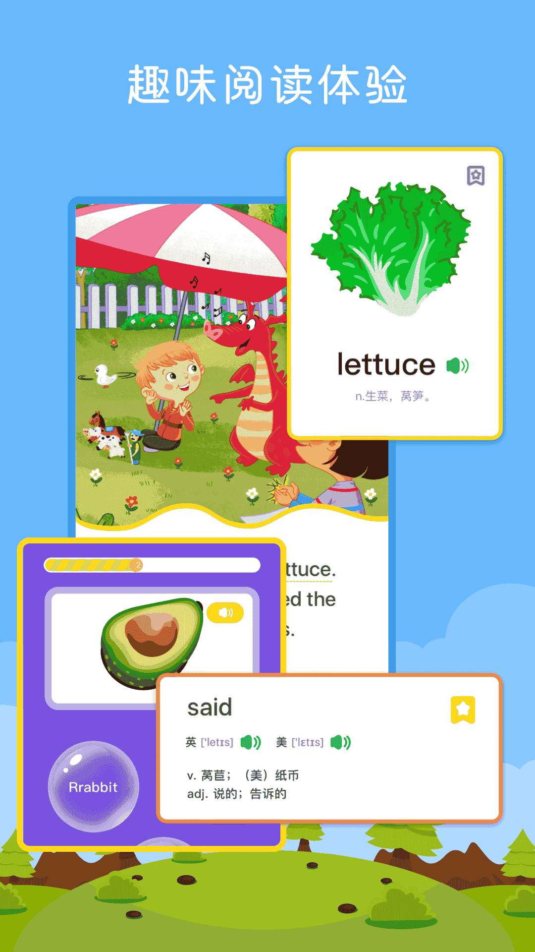 3、英語分級閱讀,海量原版原聲繪本,提升聽、說、讀、單詞能力。