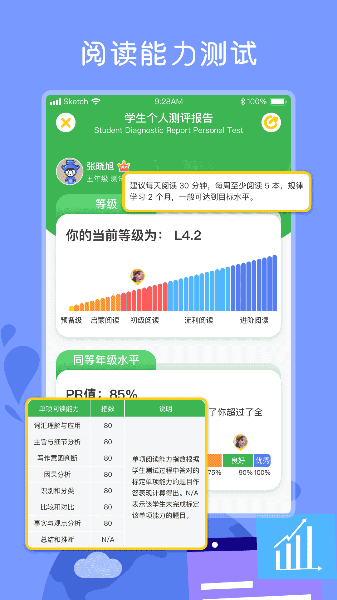 2、精準閱讀報告,多維度數據記錄并分析,閱讀數據實時掌握。