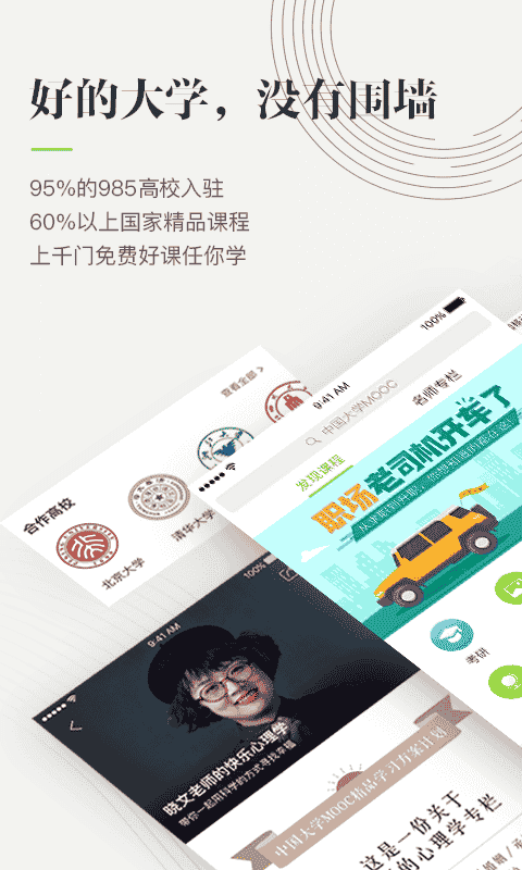 中國大學MOOC是一款由網易(杭州)網絡有限公司推出的學習輔導軟件,網易和高等教育出版社出品。