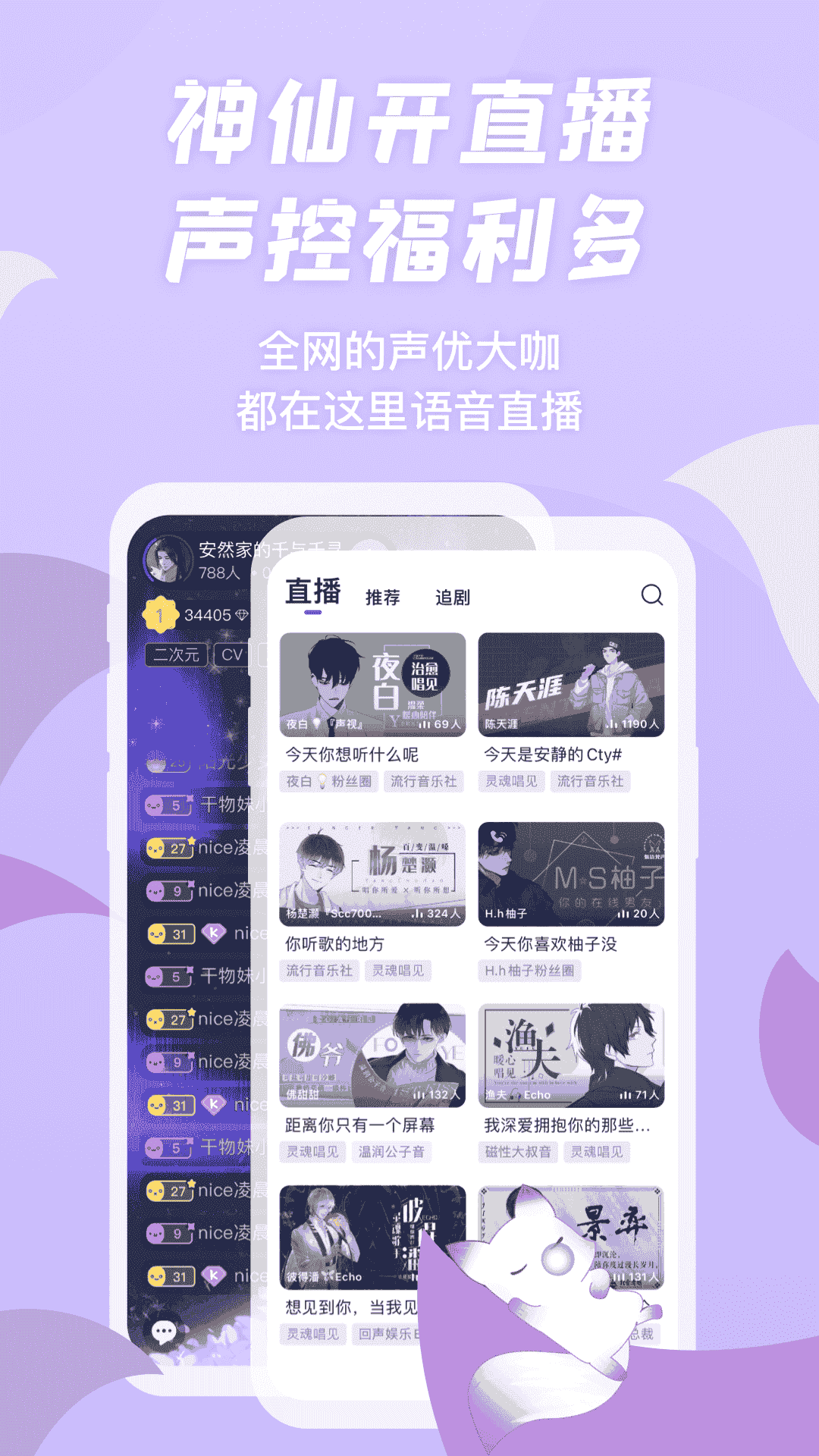 2、全網的聲優大咖都在這里語音直播,神仙開直播,聲控福利多。