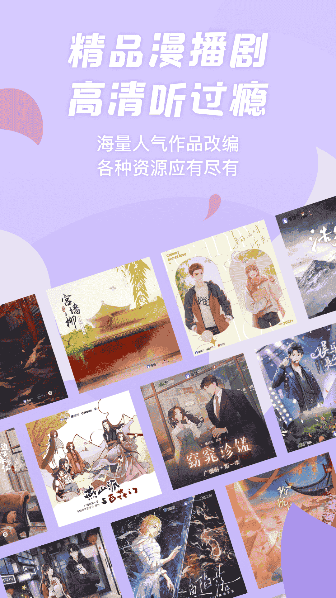 3、海量人氣作品改編,各種資源應有盡有,精品漫播劇,高清聽過癮。
