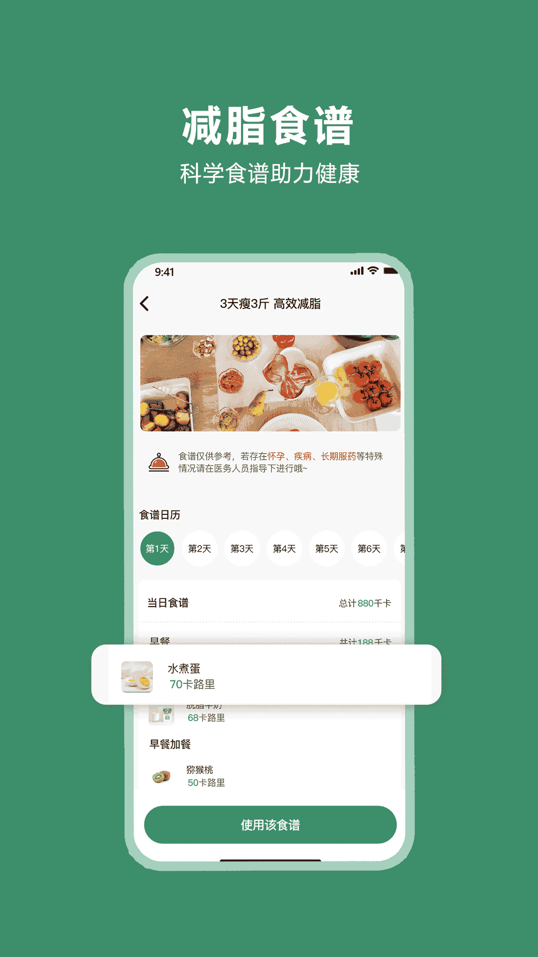 3、減脂食譜干貨滿滿,如七天高效減脂食譜、健康營養美味;碳循環減脂食譜、限能量平衡膳食;巨掉秤的減脂食譜、科學干飯就能瘦等食譜。