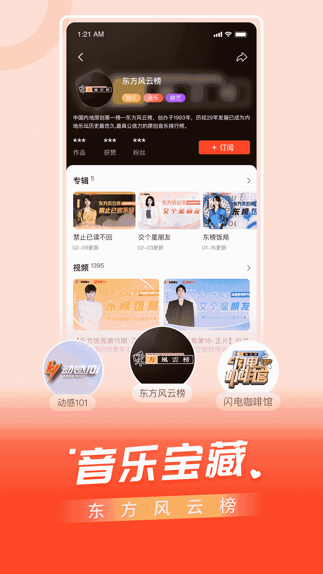 3、隨心訂閱,了解最新資訊,如專注原創搞笑正能量動漫視頻的開心錘錘;專注青年潮流的阿八億;SMG影視劇中心的劇耀東方、無時無刻傳播好音樂的TudiMusic...